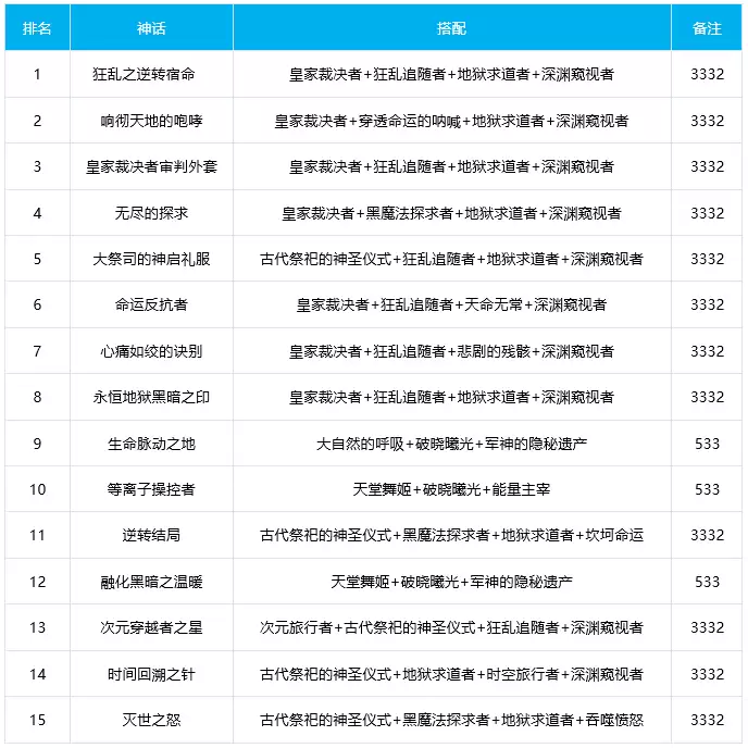 本百科性质科普大于进阶,换装切觉醒或做纯觉醒装虽有提升但对大多玩家意义不大,因此不针对高端玩家亦不做讨论,只列出相对情况下推荐的神话搭配。