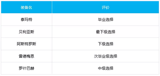 【补充说明】:不以毕业为要求的话有什么带什么,本表仅在此对BUFF装做出一定程度推荐,排名不代表强度,未出现装备不代表不能用。