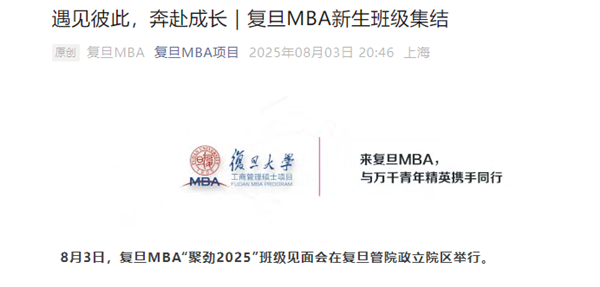 8月4日消息,据“复旦MBA项目”公众号介绍,日前,复旦MBA“聚劲2025”班级见面会在复旦管院政立院区举行。