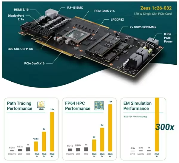 如果是EM模拟性能,那宙斯GPU甚至是NVIDIA的B200加速卡的300倍性能,实在是太逆天了。