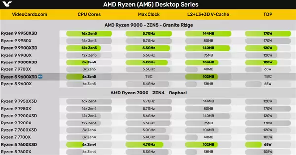 最新一代的锐龙9000X3D中已经有9950X3D、9900X3D、9800X3D及前不久曝光的9600X3D,现在又有两款新品曝光了,进一步填补市场空白。