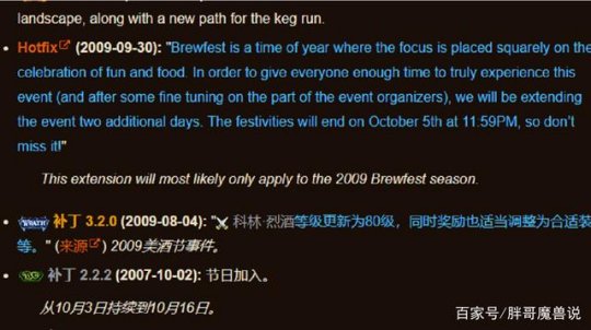 由于年代较为久远,总会出现一些记忆偏差,所以玩家们也担心TBC版本怀旧服有没有美酒节,如果有美酒节的话又会不会掉落相应的物品。为了验证消息的准确性,胖哥特地查阅了当年的补丁和蓝贴,发现魔兽世界第一次美酒节是在2.2版本,也就是2007年开放的,并且当时是掉落装备的,直到3.2版本美酒节才改版,掉落的装备属性也改成了80级。