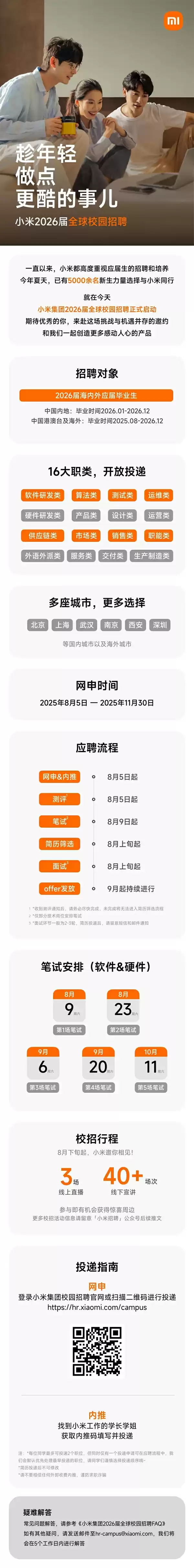 小米2026届全球校园招聘正式启动:需笔试、2-3轮面试