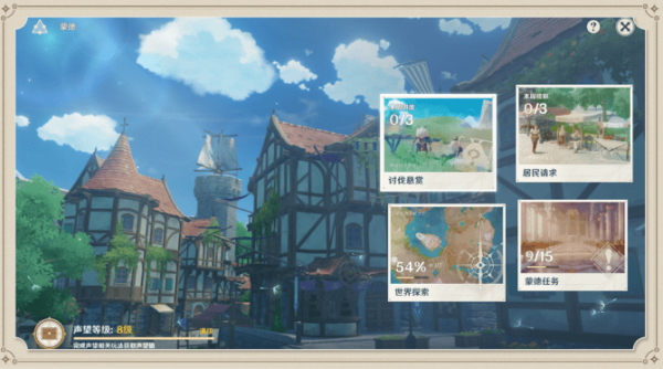 城市声望分为蒙德声望和璃月声望。