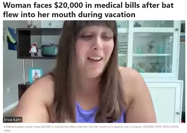 由于蝙蝠可携带非常多的病毒,严重可致命,因此卡恩在事情发生后立即去打狂犬病疫苗,然而却被收费2万美元。