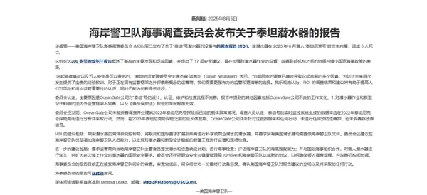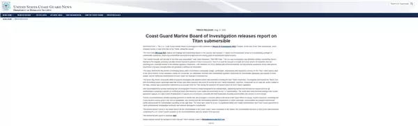 5位富豪命丧海底 美国公布泰坦号事故调查报告:设计、维护有缺陷