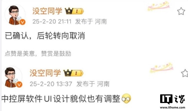 此外,路线图显示两款 SUV 都将配备后轮转向系统,不过最终上市的 YU7 并没有后轮转向。今年 2 月,有博主爆料后轮转向取消,应该就是指 YU7。小伙伴可以期待一下小米增程 SUV 是否会有后轮转向。