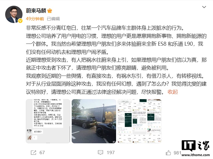 蔚来高管回应理想用户争议:拒绝恶意抹黑,反对祸水东引