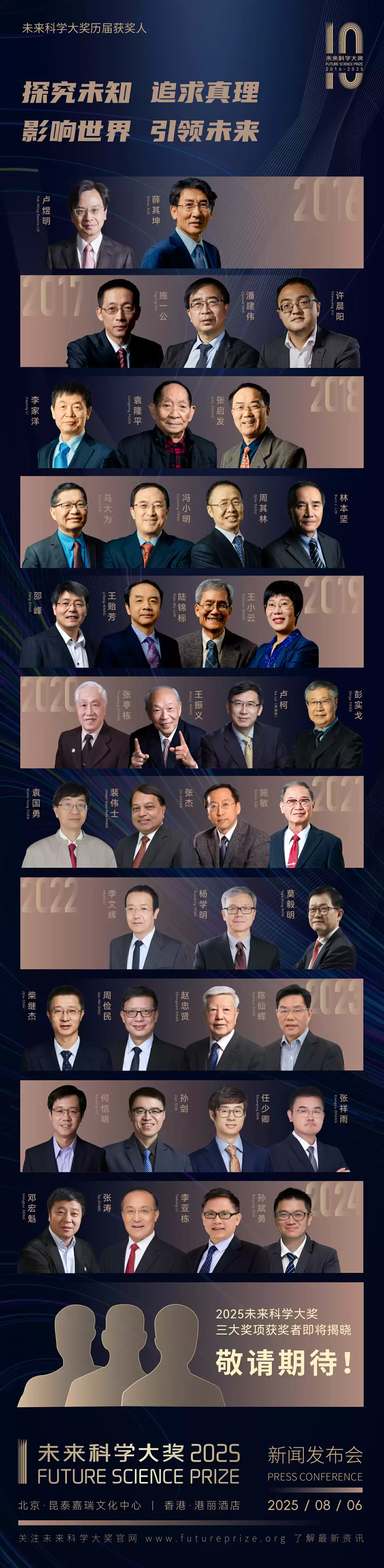 8 月 6 日消息,未来科技大奖官网今天(8 月 6 日)发布博文,报道称 2025 未来科学大奖获奖名单揭晓。季强、徐星、周忠和获得“生命科学奖”;方忠、戴希、丁洪获得“物质科学奖”;卢志远获得“数学与计算机科学奖”。