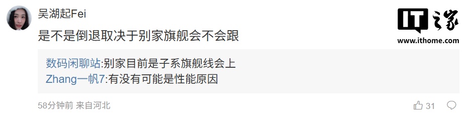 后续有用户在评论区询问:“是不是倒退取决于别家旗舰会不会跟”,博主回复道:“别家目前是子系旗舰线会上”;另一位用户则表示:“接下来折叠屏,平板都上风扇