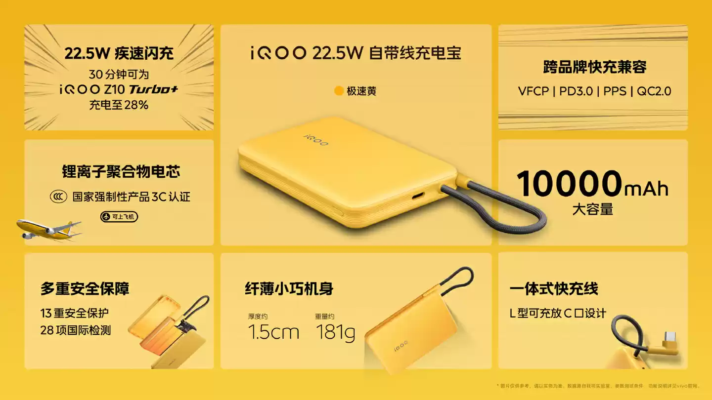 iQOO推出10000mAh自带线充电宝,22.5W快充首发89元