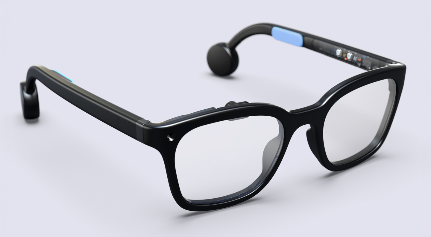 与 Meta 的穿戴设备不同,Halo 并不只靠声音提示,而是配备了一块 0.2 英寸的彩色 microOLED 显示屏,将复古街机风格的界面投射到侧视角内。声音通过镜腿的骨传导扬声器传出,增强了隐私性。借助低功耗摄像头和配备神经处理单元(NPU)的 AI 芯片,续航时间最长可达 14 小时。其整体重量仍控制在 40 克出头,佩戴轻便。