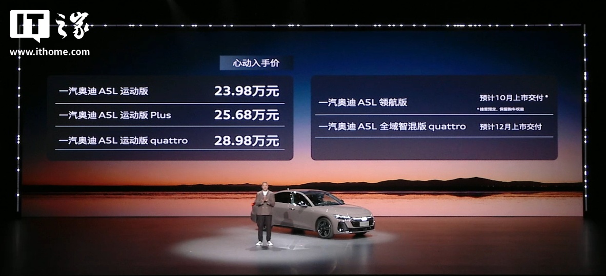 一汽奥迪 A5L 领航版:预计 10 月上市交付(搭载华为乾崑智驾技术;接受预定,保留购车权益)