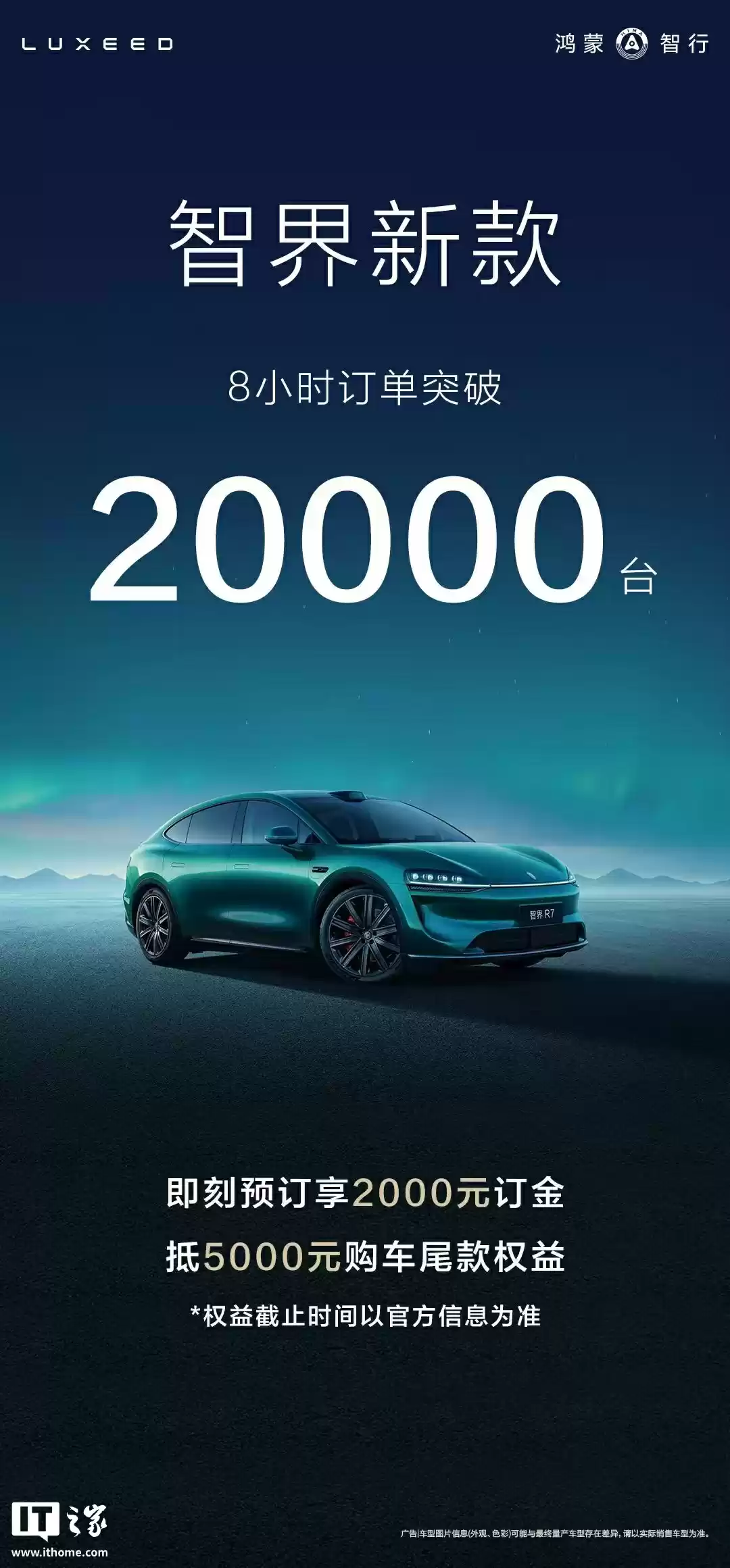 智界新车预售8小时订单破2万,鸿蒙智行25.8万元起