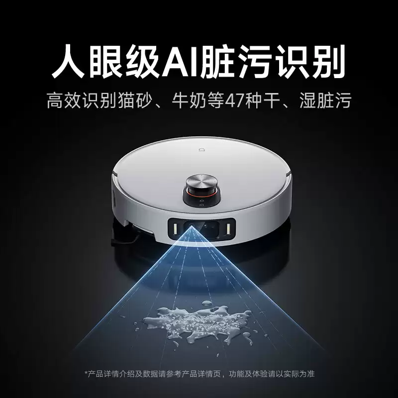 这款产品拥有 23000Pa 吸力,配备智能升降雷达、扫拖双机械臂,支持 AI 三摄全景识别,号称“米家最强”AI 清洁主机,支持人眼级视觉识别,可识别 200 种物体、47 种脏污,实现全屋地面精准清洁。