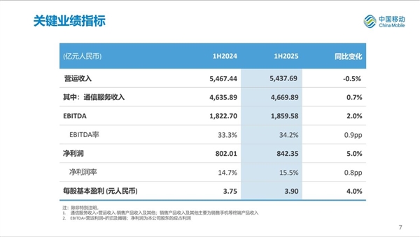 8月7日消息,今日,中国移动发布2025年中期业绩报告。