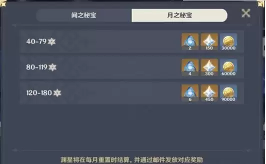这一周期性玩法类似于其他游戏的深渊模式,通过挑战多层关卡获得渊星。每月结算时:40-79颗渊星可兑换2个相遇之缘,80-179颗可兑换4个,120-180颗则可兑换6个。此外通关特定层数的第五间可获得额外奖励:第2、4、8、10层的第五间各1个;第6层的第五间3个;第12层的第五间最多可获6个。