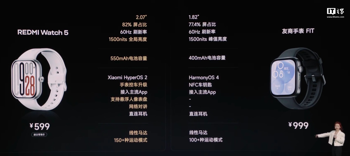 REDMI Watch 5智能手表于去年11月发布,搭载2.07英寸高刷屏(60Hz刷新率/82%屏占比/1500nits亮度),配备550mAh电池并预装澎湃HyperOS 2系统,首发价599元起。该设备还支持远程控车、网络对讲及直连耳机等实用功能。
