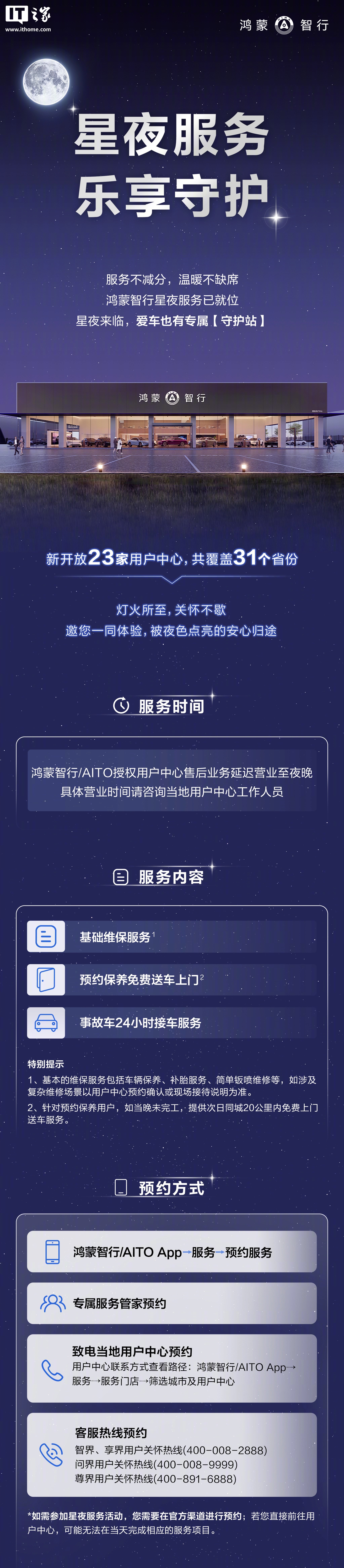 《AITO 问界汽车星夜延时服务上线,售后时间延长至 20 点》