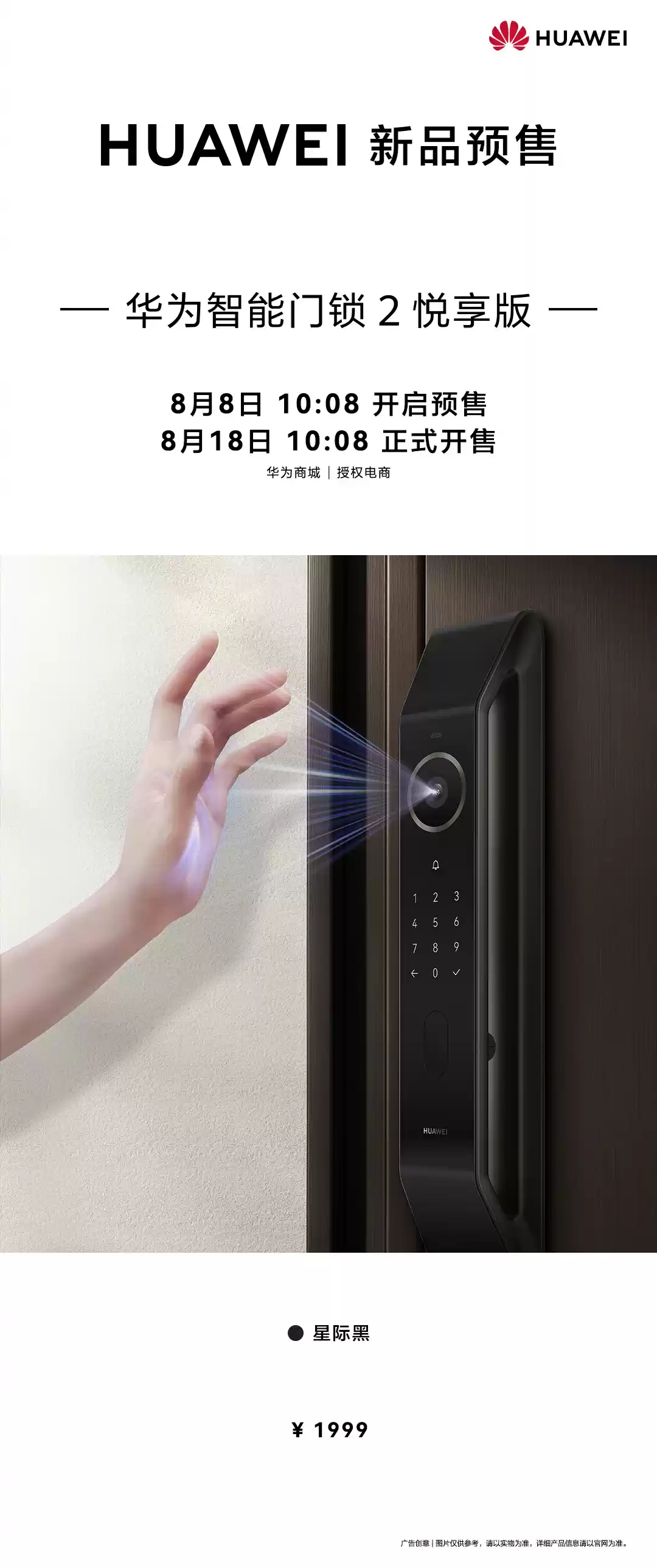 华为智能门锁2悦享版预售:AI掌静脉识别仅1799元