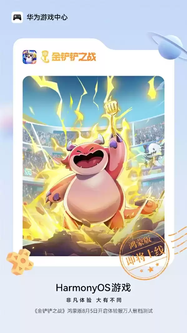 前有《金铲铲之战》鸿蒙版开启体验服万人删档测试,后有《英雄联盟手游》鸿蒙版万人公开测试。