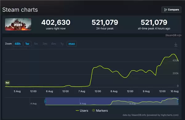 在公测全面开放后,《战地6》迅速引爆玩家热情。Steam平台数据显示,昨晚游戏同时在线人数一举突破50万大关,峰值达到521079人!