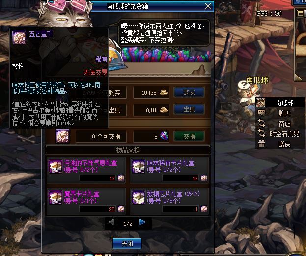 那么,什么是五芒星币呢?五芒星币是哈林地区中的新货币,在NPC南瓜球处使用 5 个时空石交换(类似精炼的时空石),无兑换次数限制