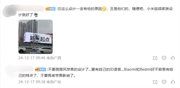 许多网友留言表示:“小米别跟进就行”“米不要用这种就行”“小米延续家族设计就好了”。