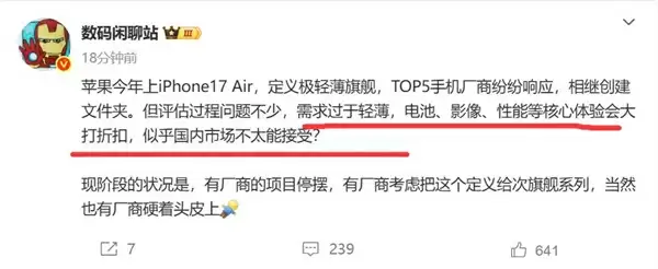 国产安卓厂商竞逐iPhone 17 Air设计,实测体验暴露三大痛点