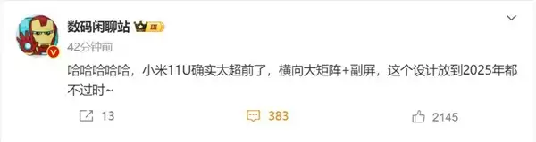 博主数码闲聊站表示,小米11 Ultra设计太超前,这个设计放到2025年都不过时。