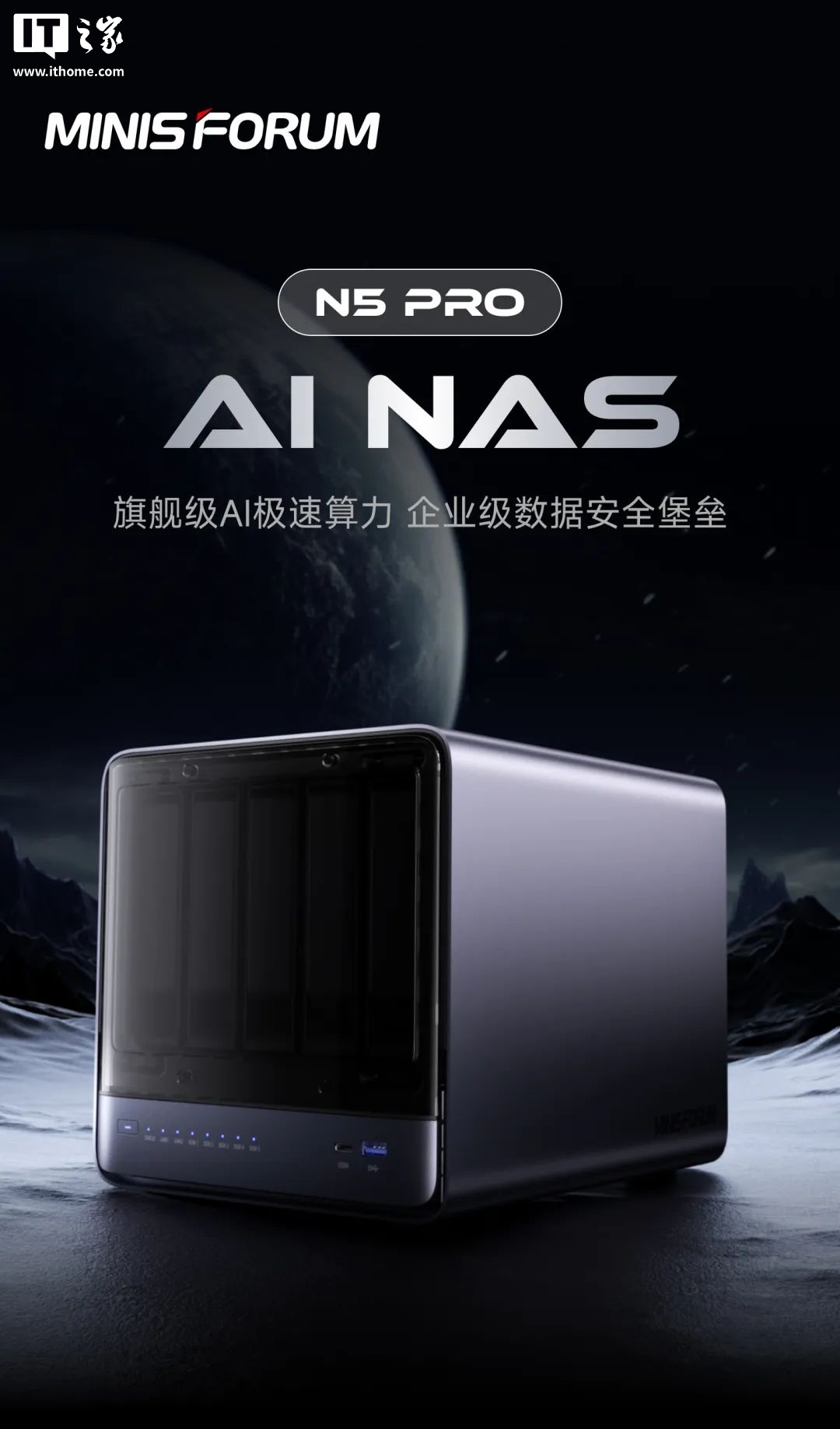 8 月 11 日消息,MINISFORUM 铭凡旗下首款高性能 NAS 主机 N5 系列今日官宣正式上市,包含 N5 和 N5 Pro 两款型号,售价 3749 元起(标准版 N5 暂未上架电商平台)。