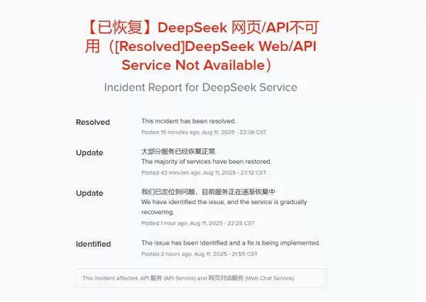 DeepSeek服务异常引关注,官方回应网页及API已恢复