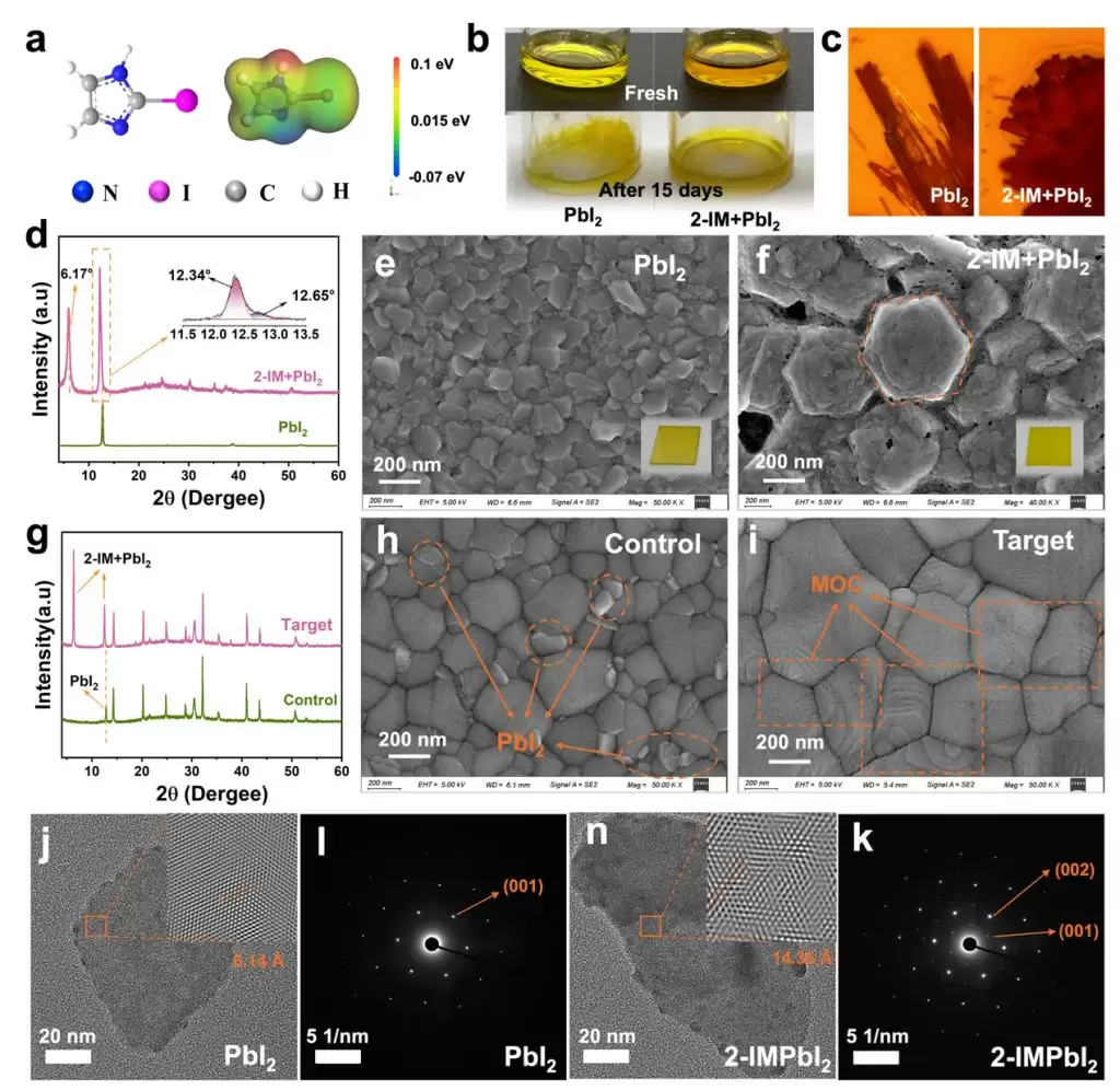针对这一技术难题,昆明理工大学研究团队提出创新性的解决方案。他们在钙钛矿前驱体溶液中引入含碘有机分子,使其与残留的碘化铅发生原位反应,最终形成具有六边形层状结构的稳定化合物。这种新型化合物不仅能有效修复晶界缺陷,还能抑制离子迁移和相分离现象,显著提升了电池的电荷传输性能。
