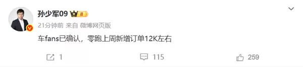 8月11日,汽车行业知名博主孙少军发布最新消息称,零跑汽车上周新增订单量达到约1.2万台。