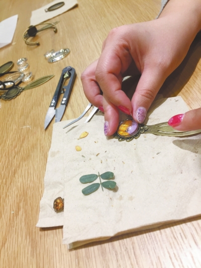 看似简单的几个动作,当学员动手时,很多人才发现这个过程其实并不简单。“讲话声音太大、呼吸太重都会将排列好的花型吹散。”陈文雯一边提醒学员,一边制作其他干花作品。项链、手镯、书签,3个小小的押花作品,不少学员花费了两个小时才制作完成。一位带着女儿来上课的妈妈表示,押花的步骤虽然简单,但是必须专心致志、全神贯注才能完成,这个集中思想的过程,让她感到静心、放松,也很有成就感。