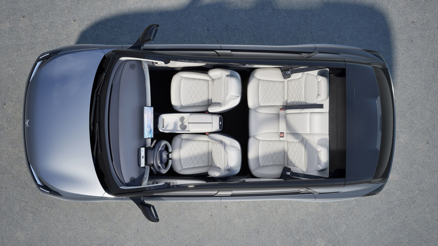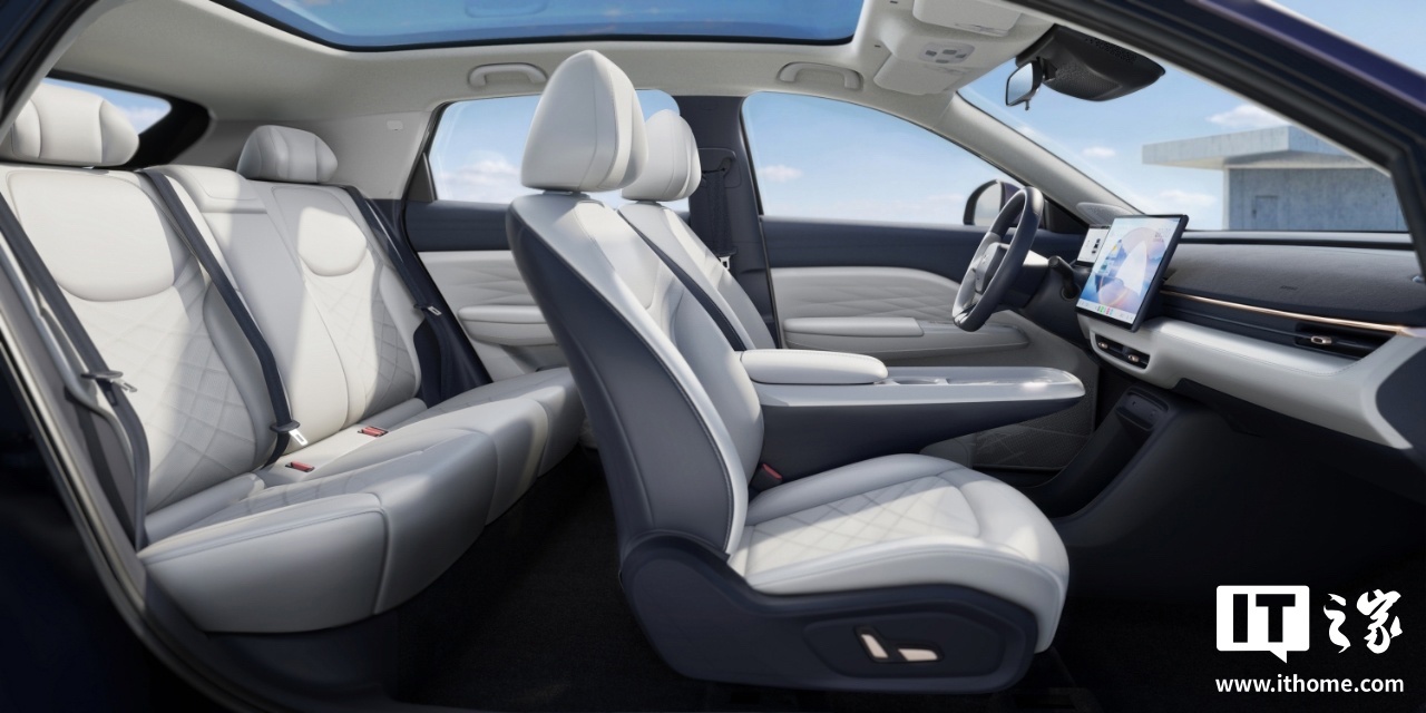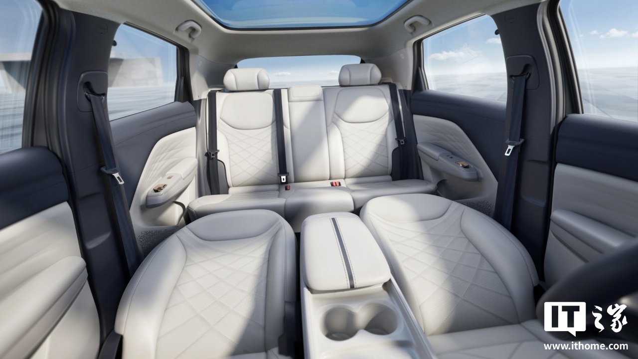 综合内饰官图,该车采用 2+3 式(5 座)座椅布局,提供 15.6 英寸悬浮式中控屏及 8.8 英寸液晶仪表盘,匹配平底造型方向盘、怀挡式换挡杆,使用浅色系内饰,匹配带遮阳帘的全景天幕。官方还透露该车的前排座椅能够完全放倒。