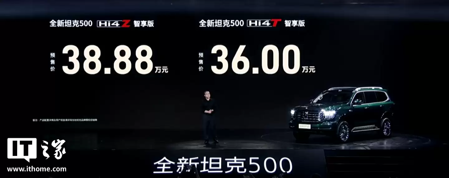 坦克500 Hi4-T/Z智享版预售36万起:激光雷达+Ultra智驾系统