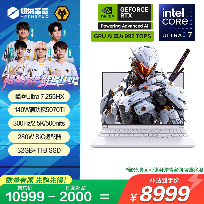 机械革命极光X Pro笔记本升级:Ultra7-255HX+RTX5070Ti,32G内存1T存储售10999元