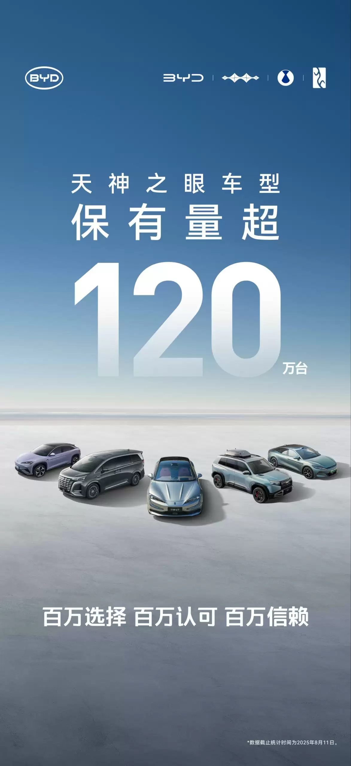 8 月 12 日消息,比亚迪今晚宣布:7 月销售辅助驾驶车型 228215 辆,辅助驾驶车型国内占比 87%;每天辅助驾驶数据生成超 7200 万公里;天神之眼车型累销超 120 万辆。