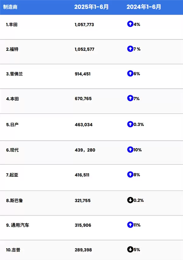 今年上半年的美国汽车销量,基本上清一色的日本车