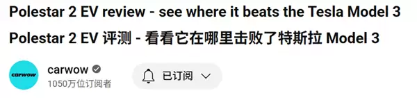 油管超级大V carwow对极星2的评测标题就是,看看它在哪里击败了特斯拉Model 3。