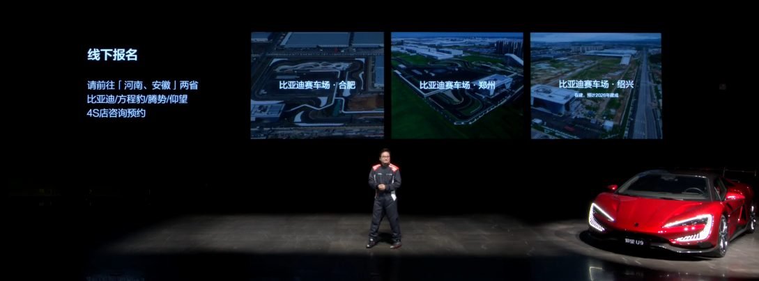 比亚迪在发布会上透露,**2026年将在广西南宁新建试车场,绍兴赛车场也将于明年初投入运营**。未来还将在华东地区打造占地2000亩、海拔500米的自然山地越野基地。