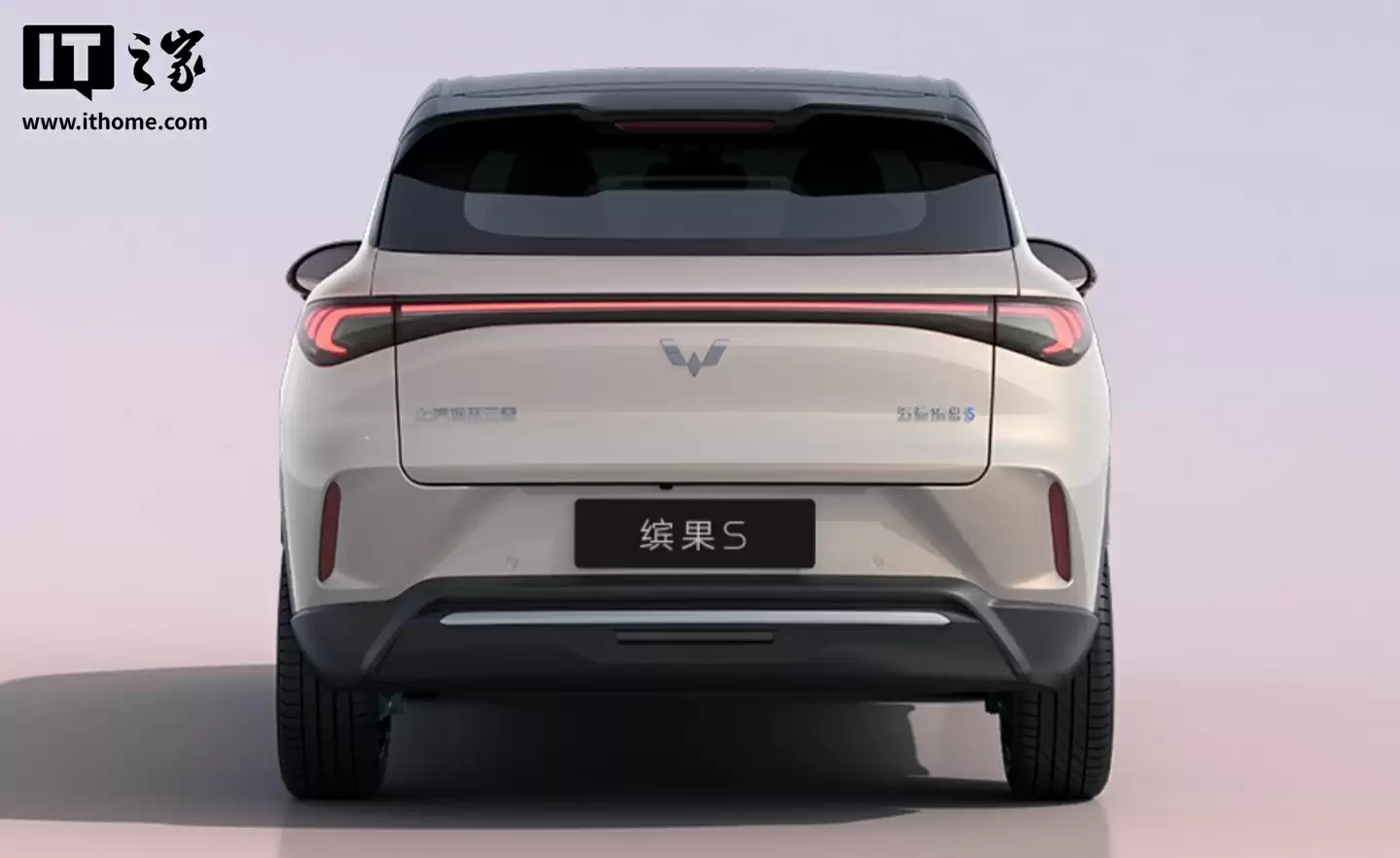 车尾部分,五菱缤果 S 应用了贯穿式灯带设计,尾门右侧的“五菱缤果 S”标识表明其身份。在车身尺寸方面,新车的长宽高分别为 4265/1785/1600 毫米,轴距 2610 毫米。