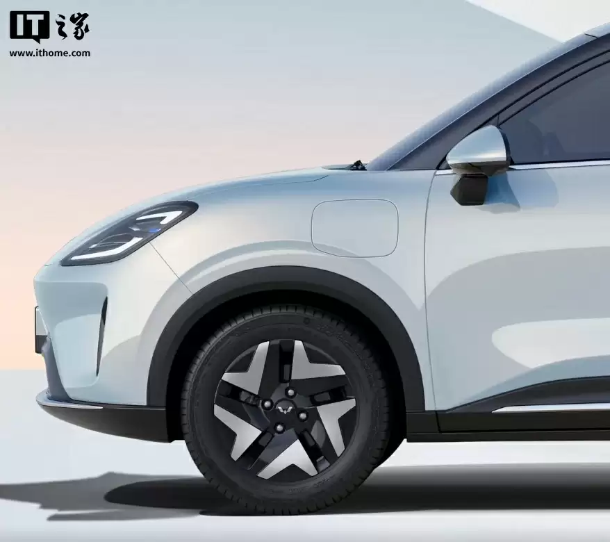 回顾外观官图,五菱缤果 S 采用了封闭式前脸设计,搭配 C 形发光造型的前灯组,具有较高的辨识度。充电口位于左前翼子板区域,车身侧面,新车配备了平面化的双色 16 英寸轮辋,搭配无漆材质全车下包围和轮眉。车门把手采用传统样式,简洁实用。此外,五菱缤果 S 将提供四款车身涂装,分别为松弛灰、自在蓝、逍遥紫和放空白,官图中的车辆均采用黑色车顶配色,形成了独特的双色车身效果。