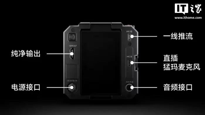 专业音频接口方面,配备MIC接口可直接连接猛玛无线麦克风,HDMI输出接口则方便连接外接显示屏进行监看。