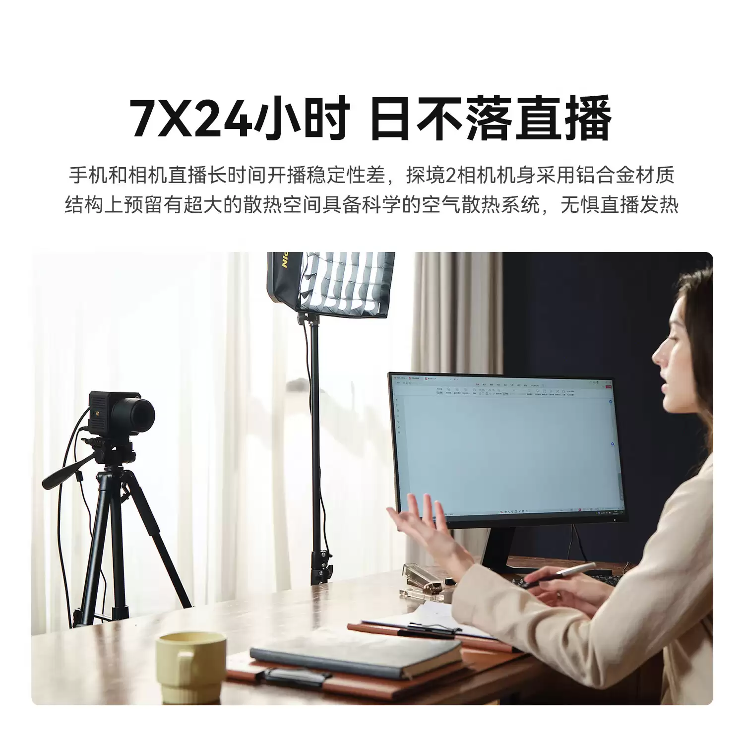 这项核心技术集合了猛玛自主研发的多项AI算法,包括AE(自动曝光)和AWB(自动白平衡)等核心模块。实测表明,探境2可以精准适应从自然光到专业八灯布光等各种复杂光线环境,色温覆盖范围达到2000K-8000K的专业级别。90%的主播开机即可直接进行高质量直播,无需繁琐的参数调节。