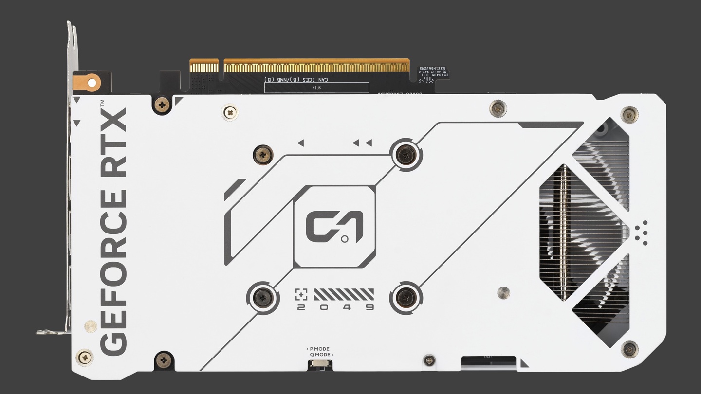 全系列显卡均采用白灰双色面板设计,搭载强化通风白色背板,内部PCB为经典黑色,I/O挡板则保留了金属原色。所有型号均支持P/Q双vBIOS模式硬件切换功能。显卡配备两枚采用双滚珠轴承的白色无光轴流风扇,扇叶采用小轮毂搭配长叶片加稳定环的设计结构,在GPU温度低于50摄氏度的低负载或待机状态下可自动停转。