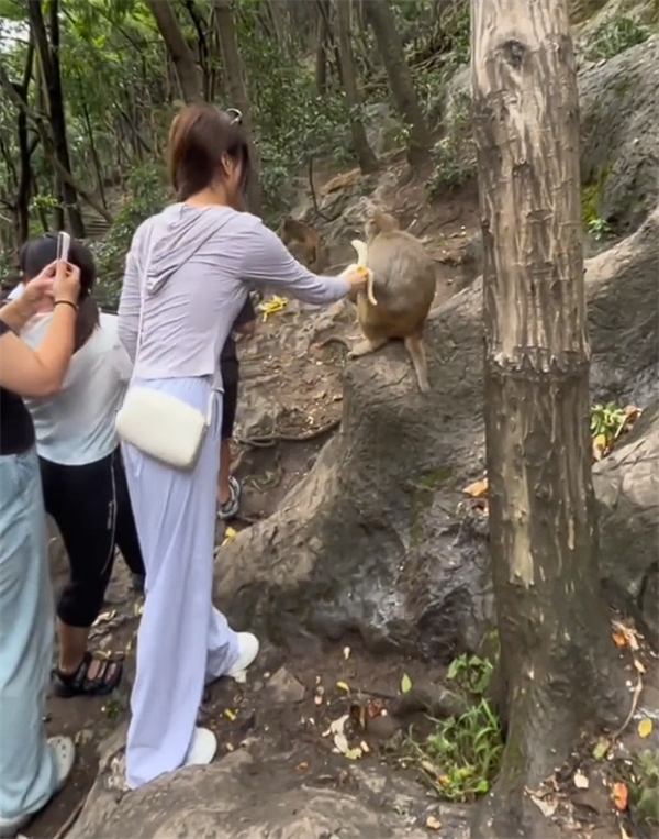 游客景区喂猴被踢倒骨折,专家提醒投食风险