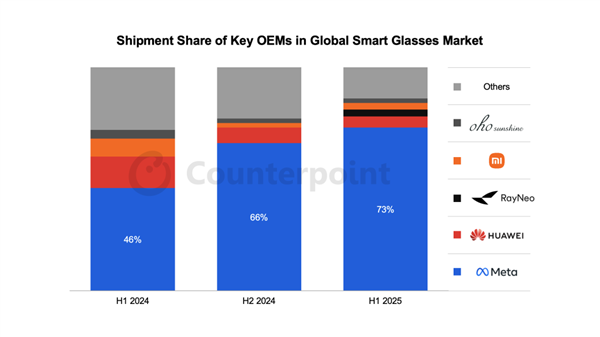 Meta凭借73%的市场占有率稳坐头把交椅。值得一提的是,其Ray-Ban Meta AI眼镜系列表现尤为亮眼,出货量同比增幅超过200%。