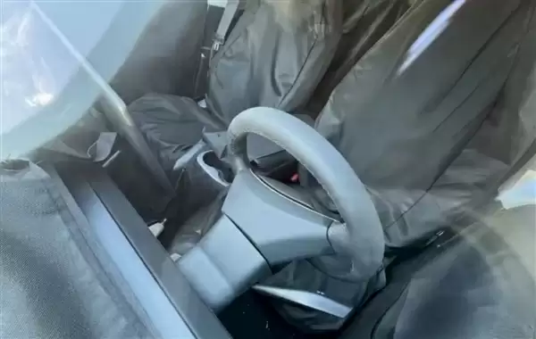 至于车内,在此之前已有谍照流出,前排几乎看齐焕新Model Y,甚至还保留有转向灯杆,不过也有独属的设计,比如扶手箱前方与中控台为断开状态,如此主副驾驶呈贯通。